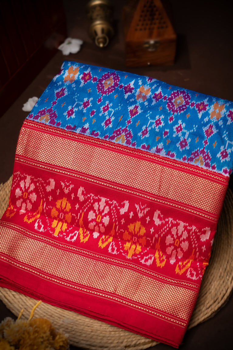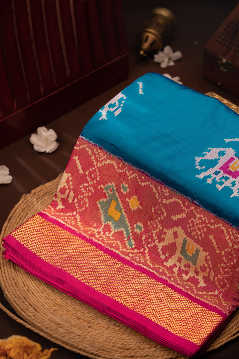Mandir Blue & Multi-Colour Ikat Ikat Saree