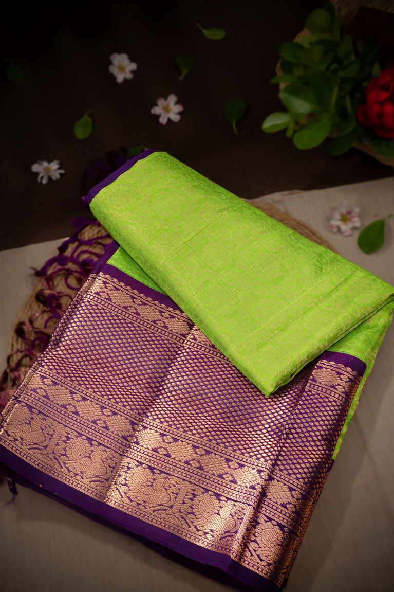 Mandir Green and Grey & Pista Green Kuppadam Motifs Saree