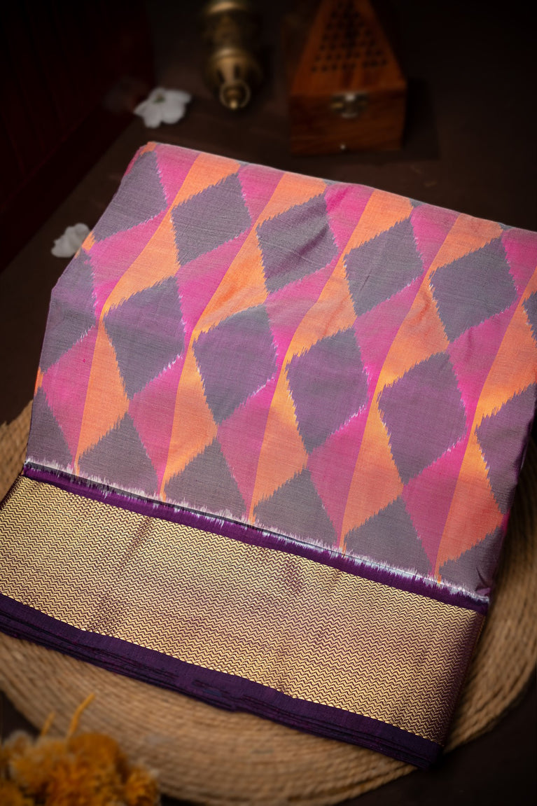 Mandir Grey & Blush Pink Ikat Ikat Saree
