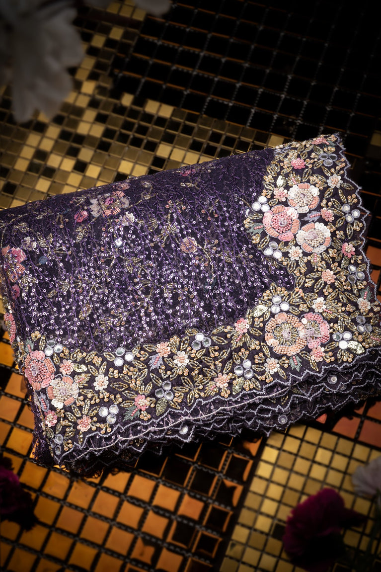 Mandir Dark Wine & Dark Wine Fancy Work Saree