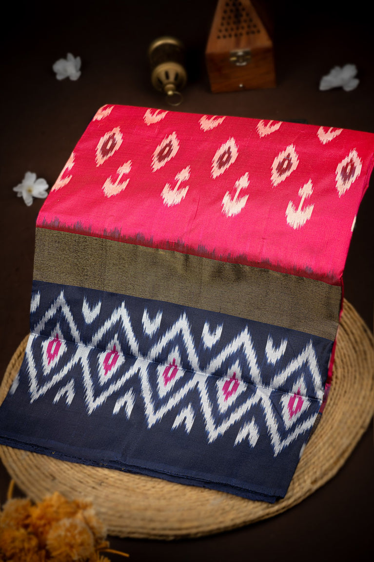 Mandir Dark Pink & Navy Blue Ikat Ikat Saree