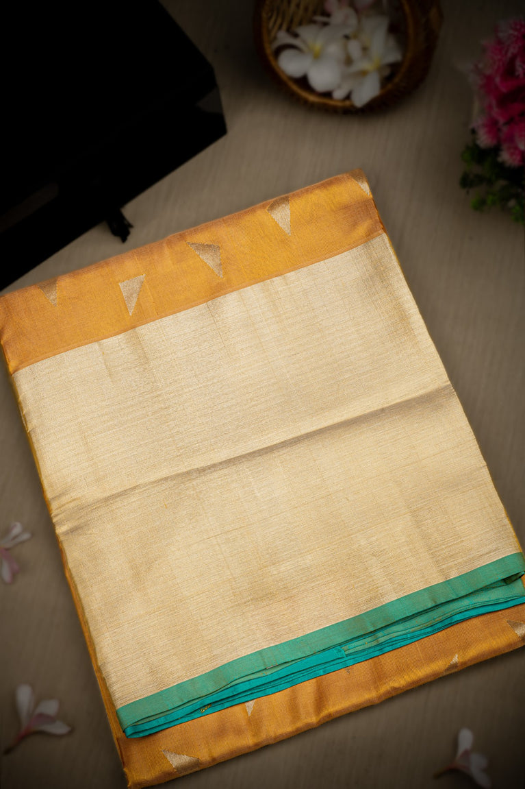 Mandir Gold & Sea Green Venkatagiri Motifs Saree