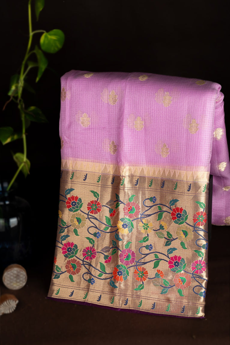 Mandir Lavender & Lavender Kanchipuram All Over Saree