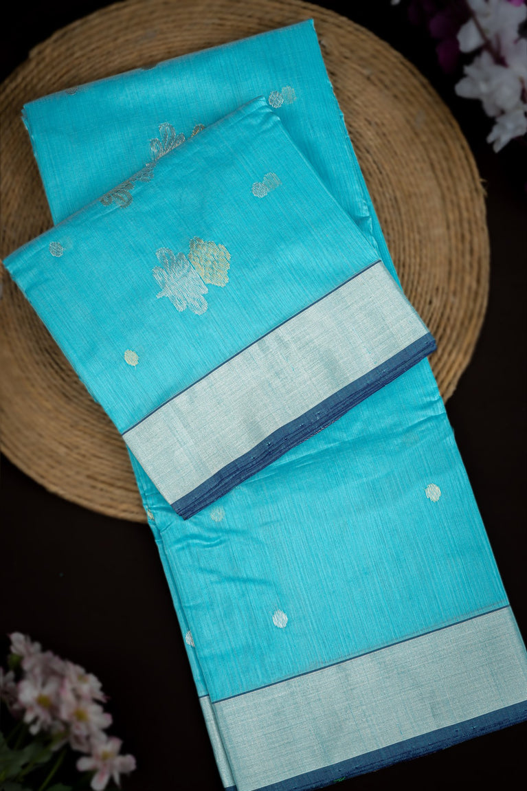 Mandir Sky Blue & Silver Chanderi Motifs Saree