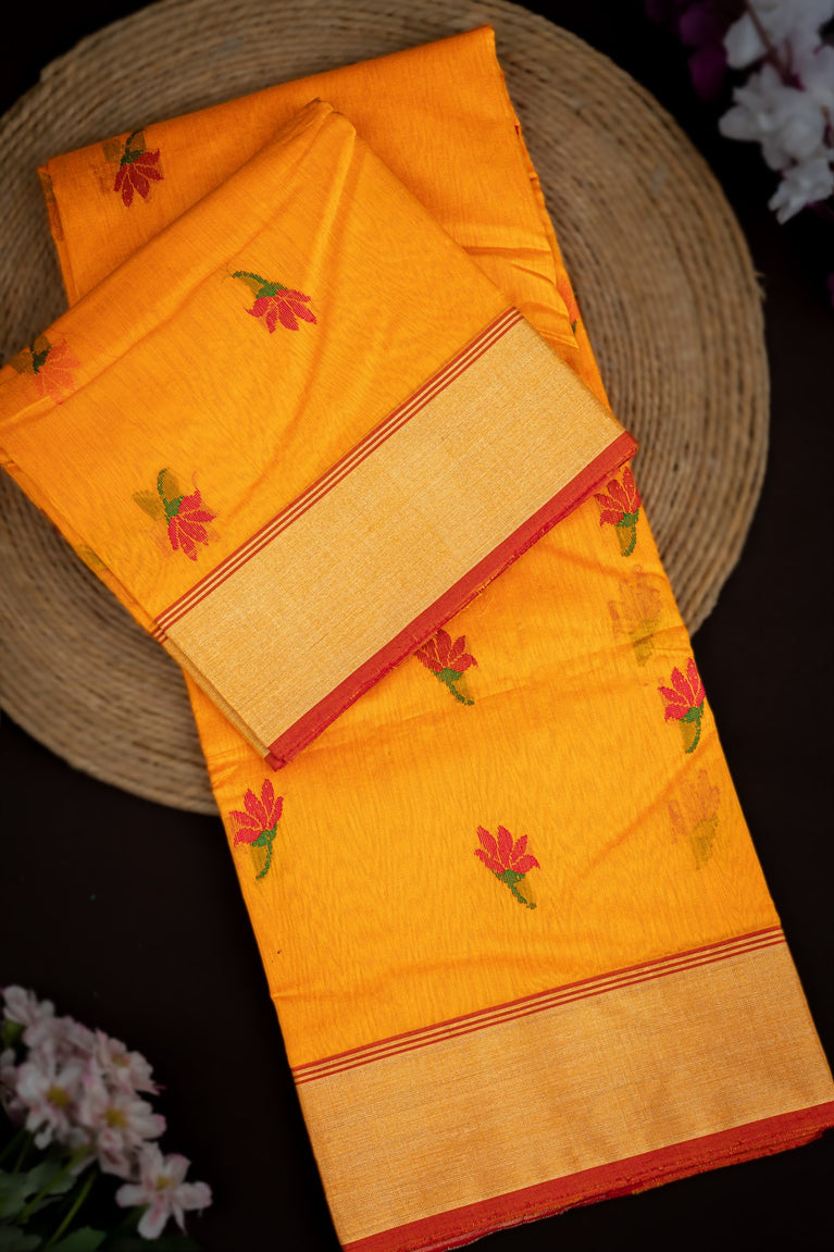 Mandir Tangy Orange & Red Chanderi Motifs Saree