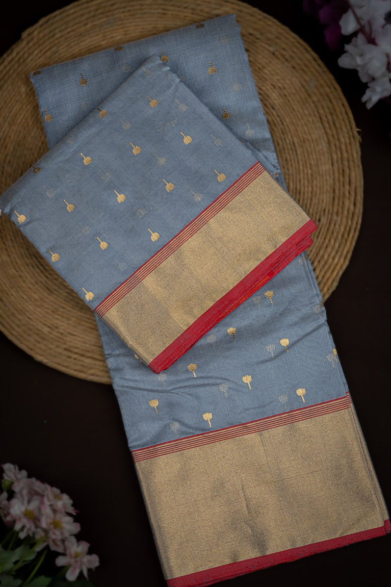 Mandir Space Grey & Gold Chanderi Buttis Saree