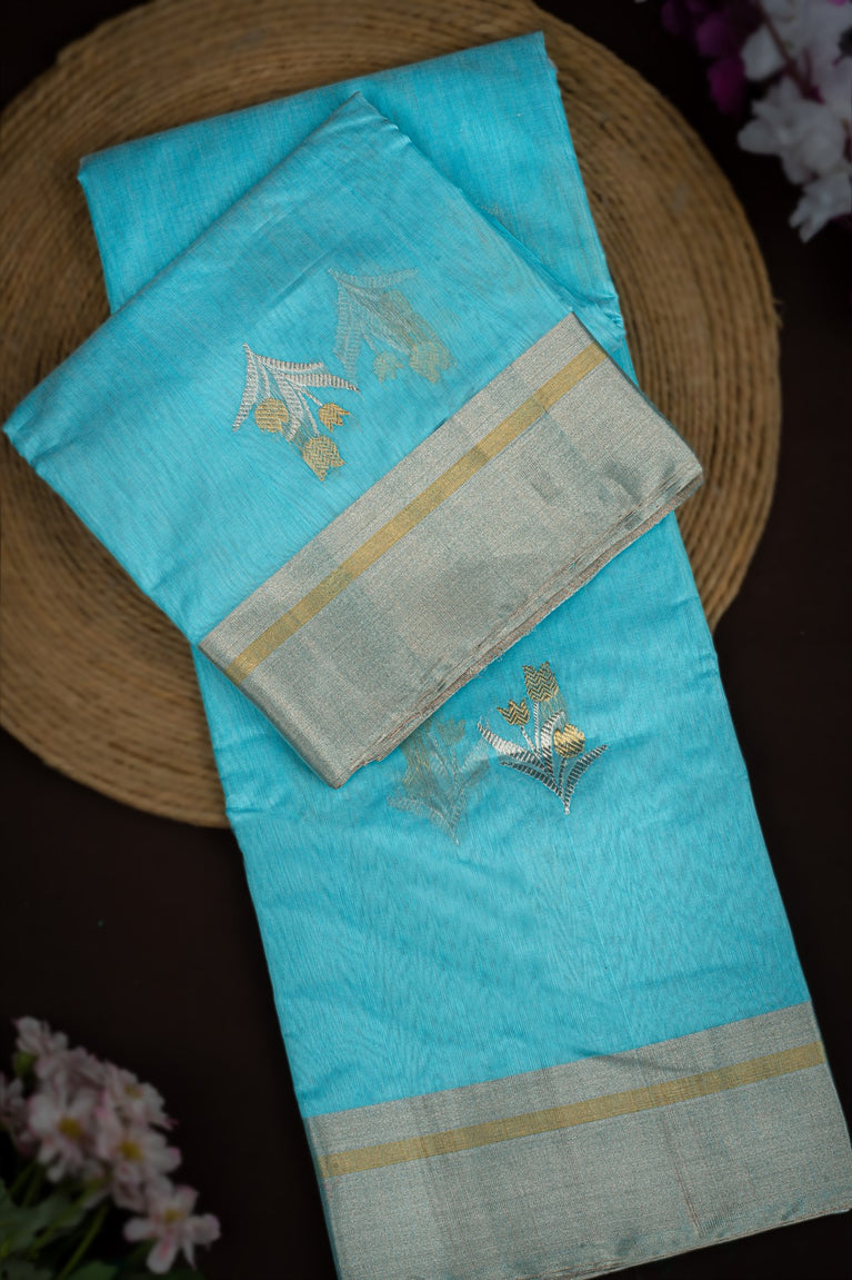 Mandir Sky Blue & Sky Blue Chanderi Motifs Saree