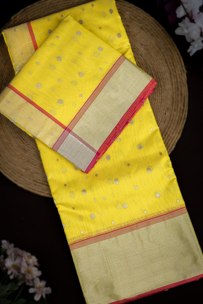 Mandir Yellow & Gold Chanderi Buttis Saree