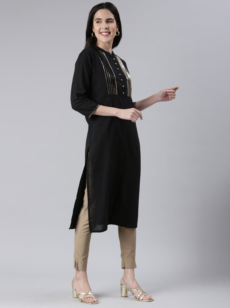 Neeru's Black Straight Solid Cotton Kurtas