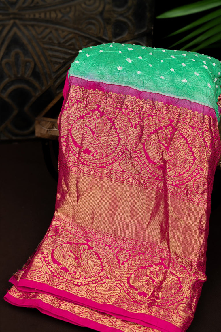 Varamahalakshmi Light Green & Pink Bandhani Bandhani Saree