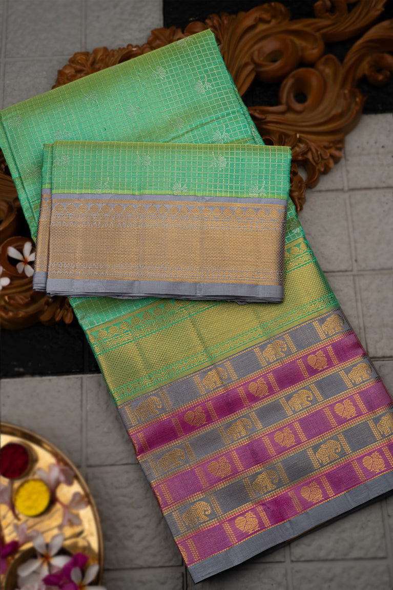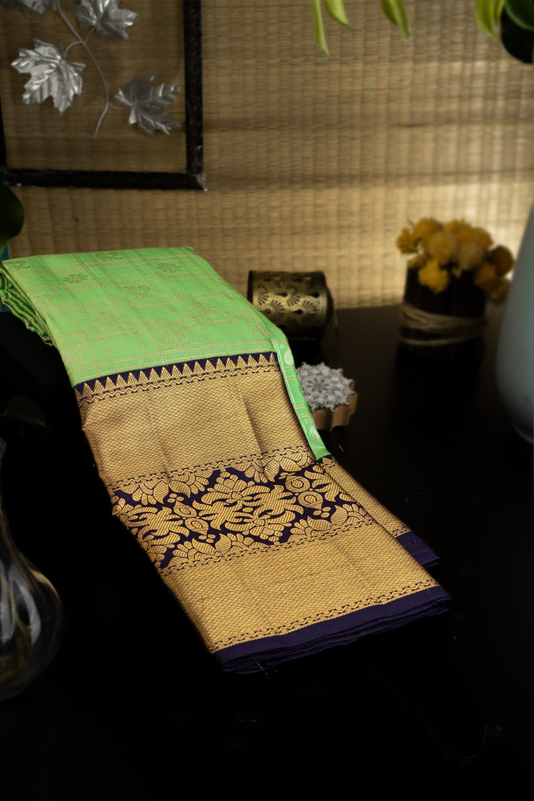 Varamahalakshmi Light Green & Royal Blue Kancheepuram Checks And Buttis Saree