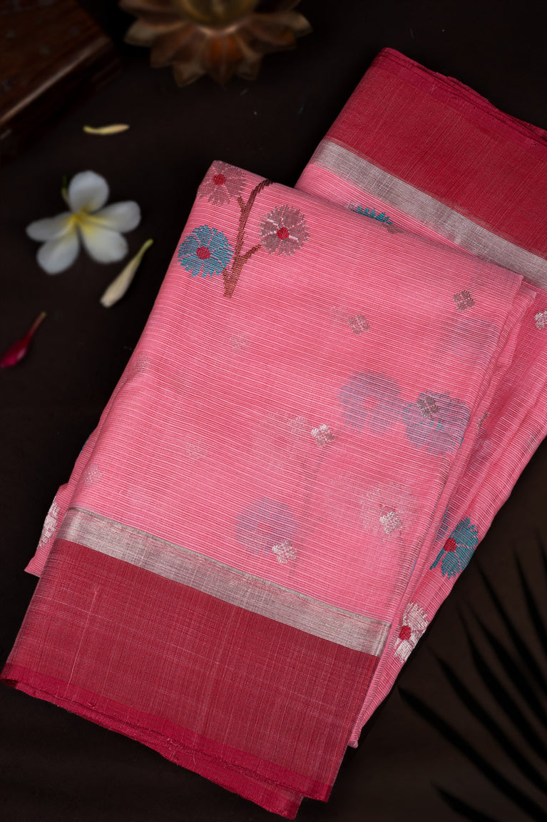 Varamahalakshmi Light Pink & Maroon Zari Kota Motifs Saree