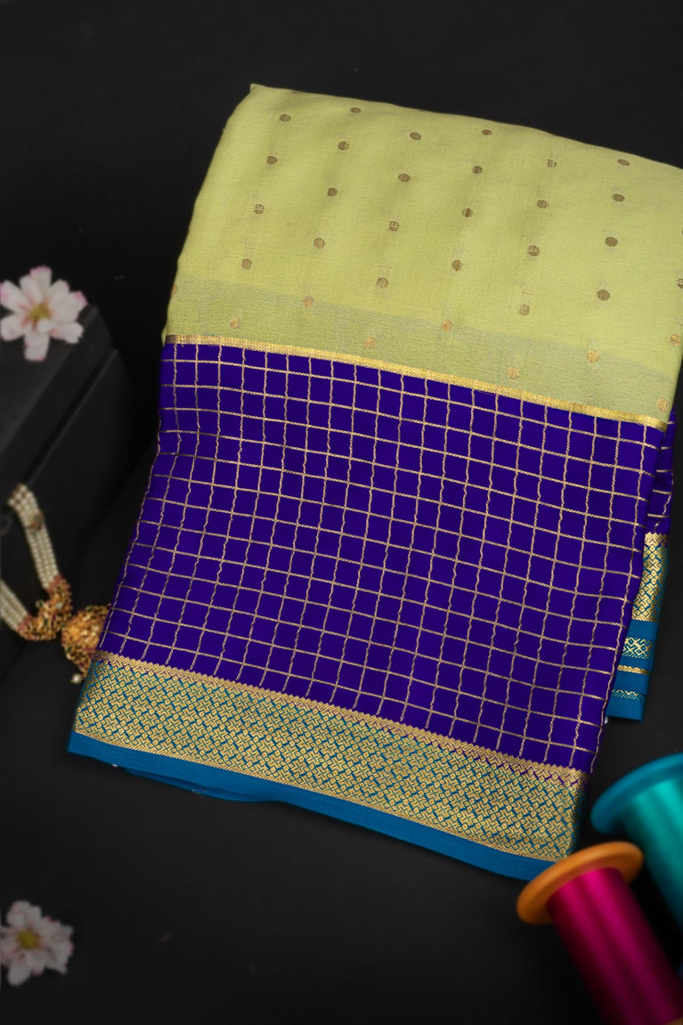Varamahalakshmi Light Green & Royal Blue Mysore Polka Dots Saree