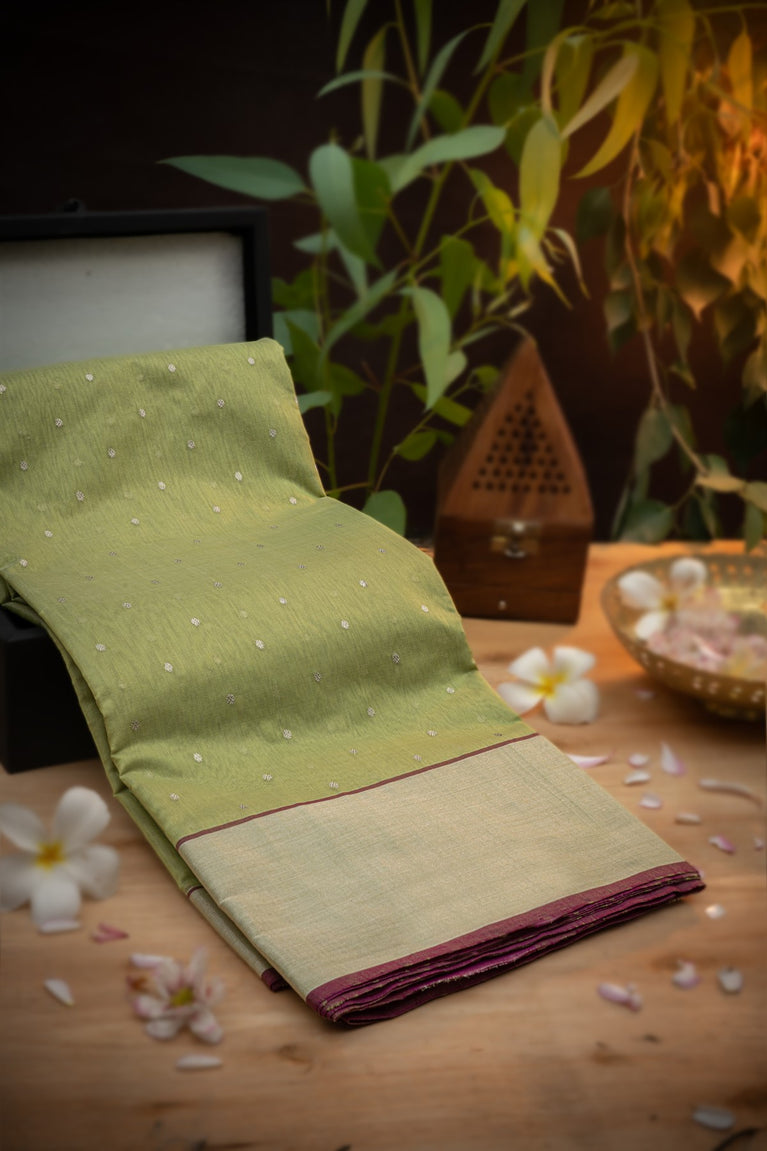 Varamahalakshmi Lime Green & Magenta Chanderi Buttis Saree
