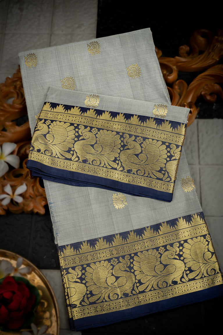 Varamahalakshmi Light Grey & Royal Blue Venkatagiri Motifs Saree