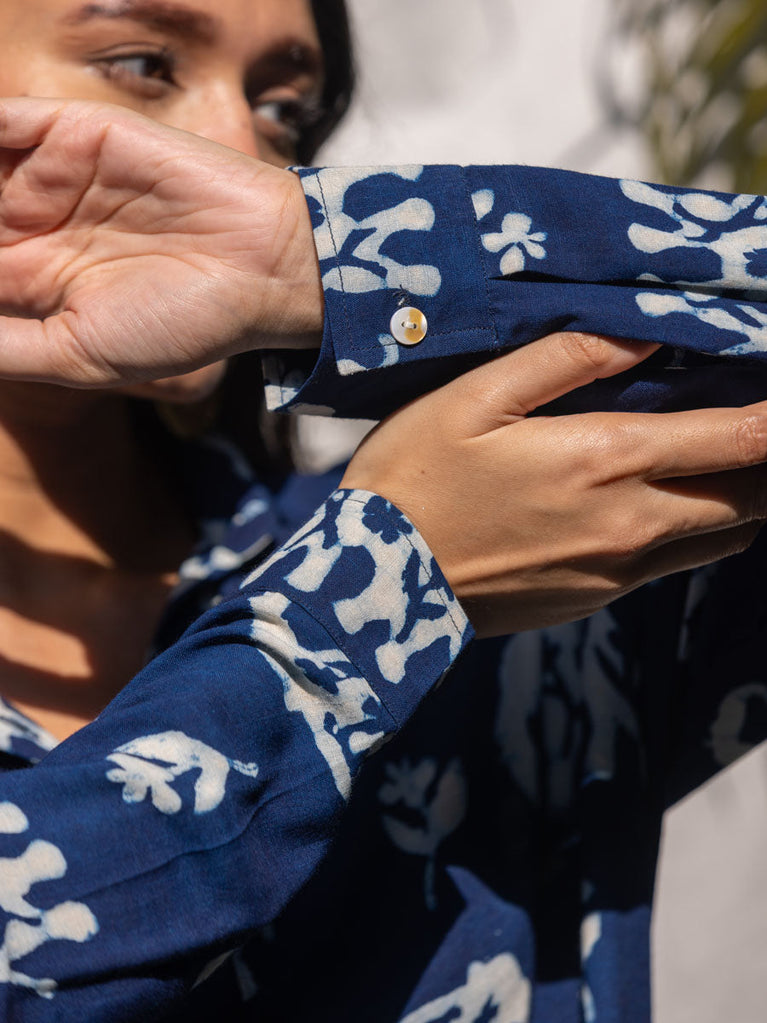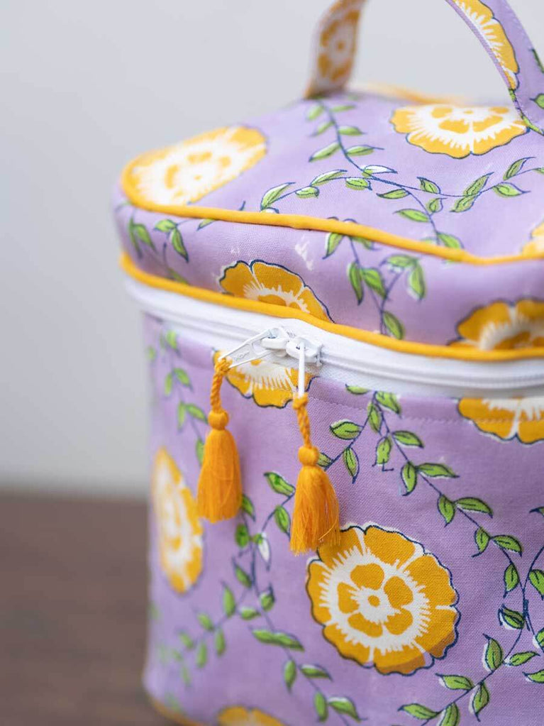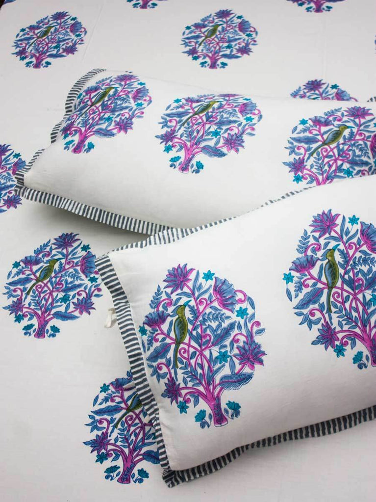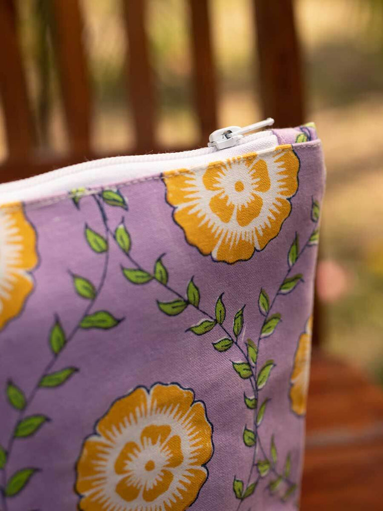 Iris Block Printed Cotton Cushion Cover - 20 Inch