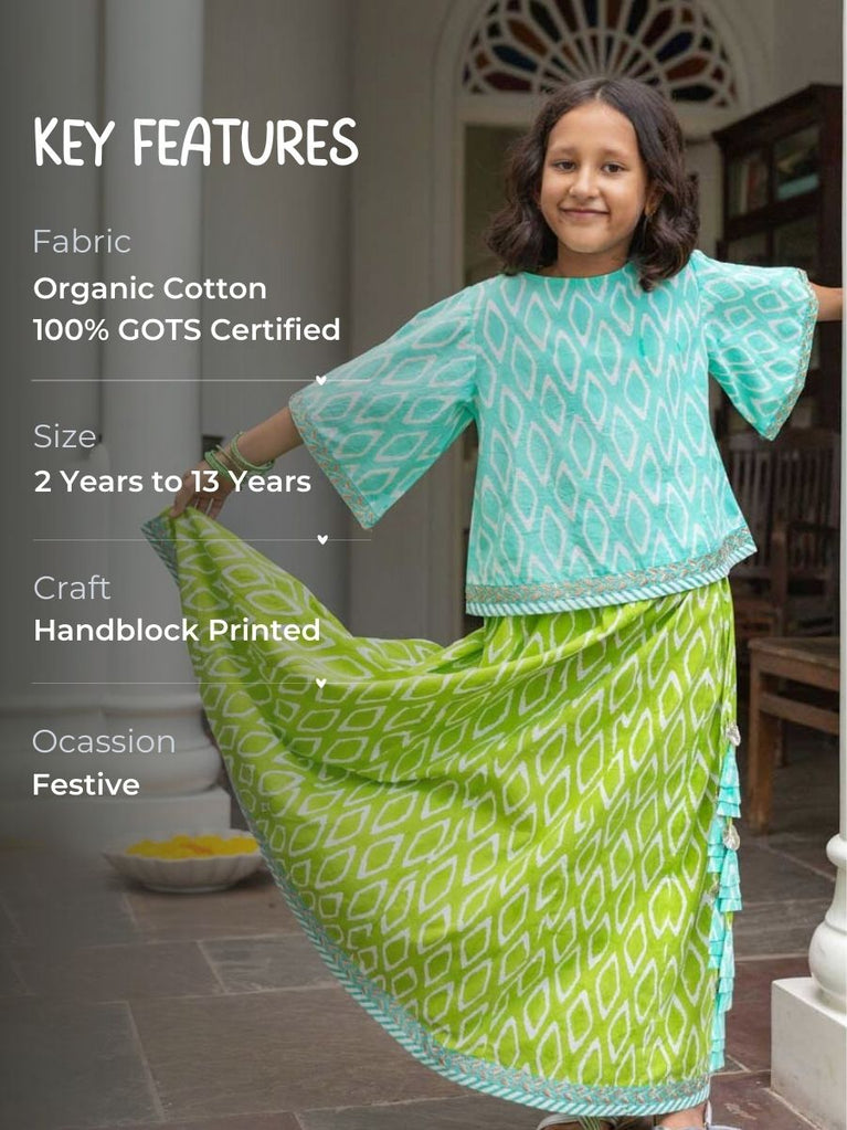 Set of 3 - Lilly Block Printed Cotton Lehanga