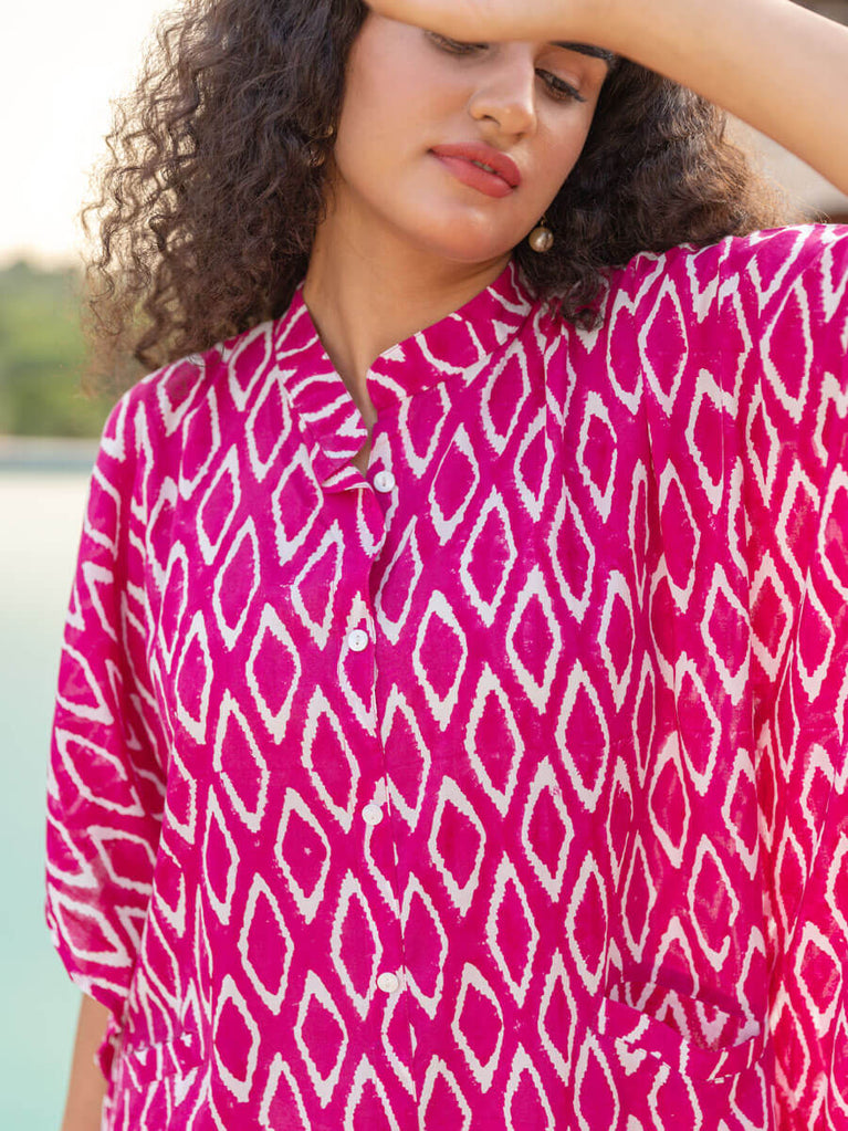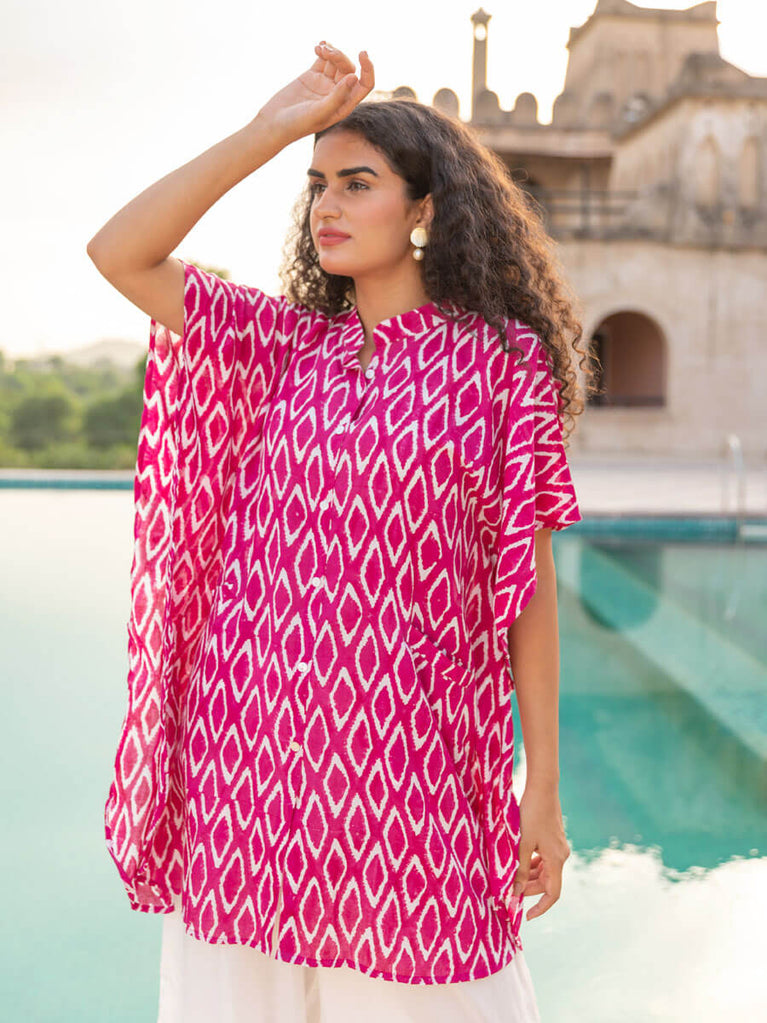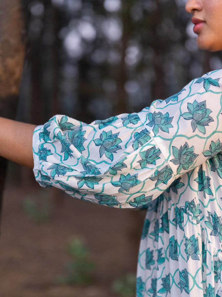 Siyahi Indigo Hand Printed Cotton Kaftan