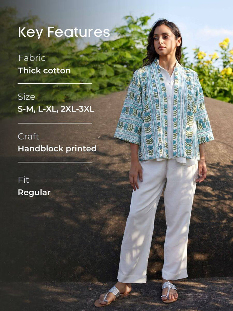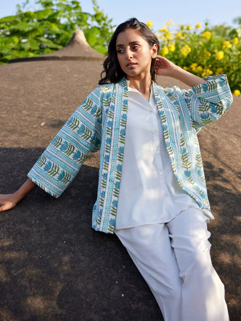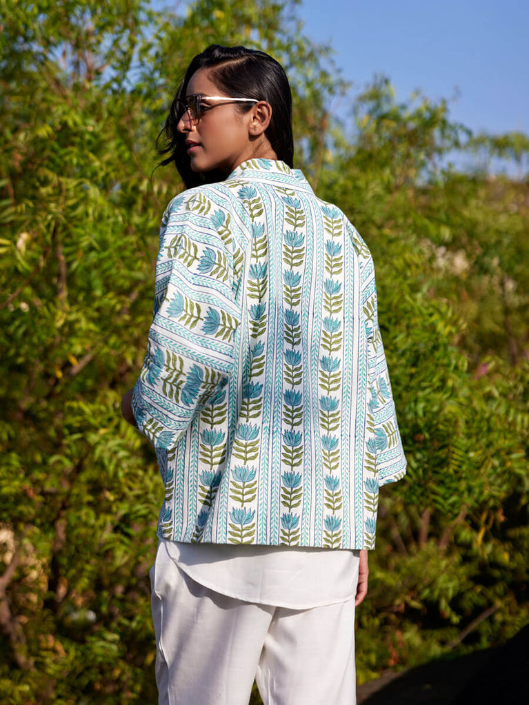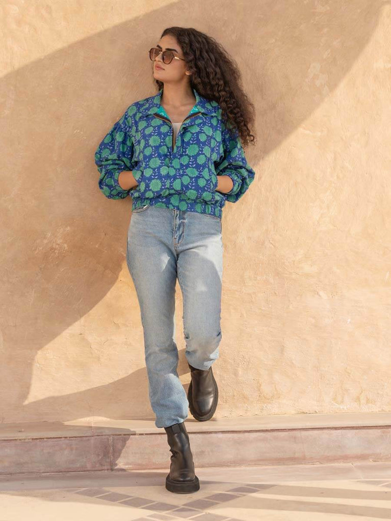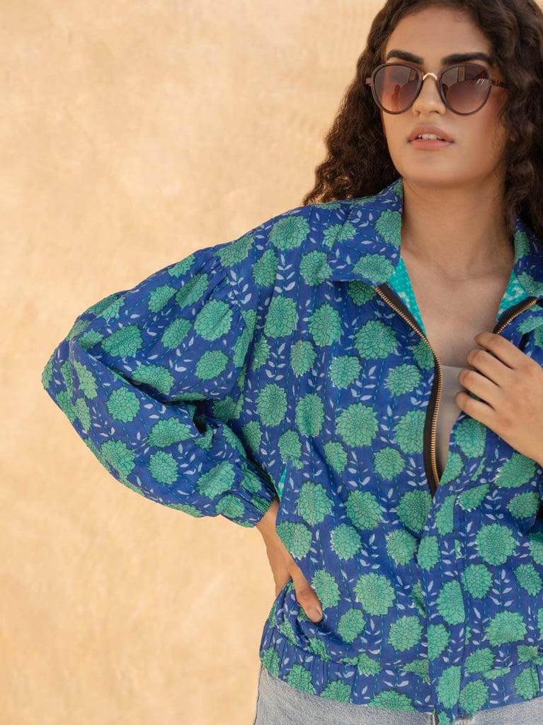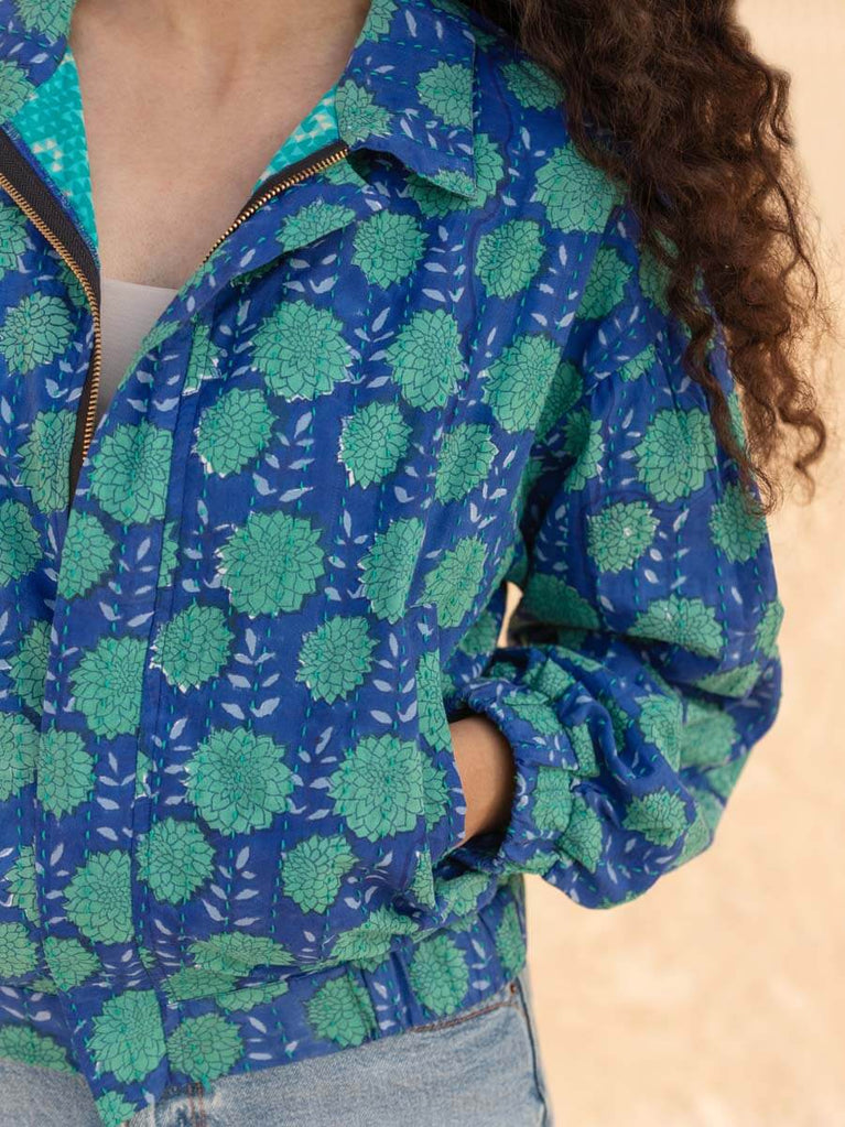 Sherpa Kantha Embroidered Block Printed Bomber Jacket