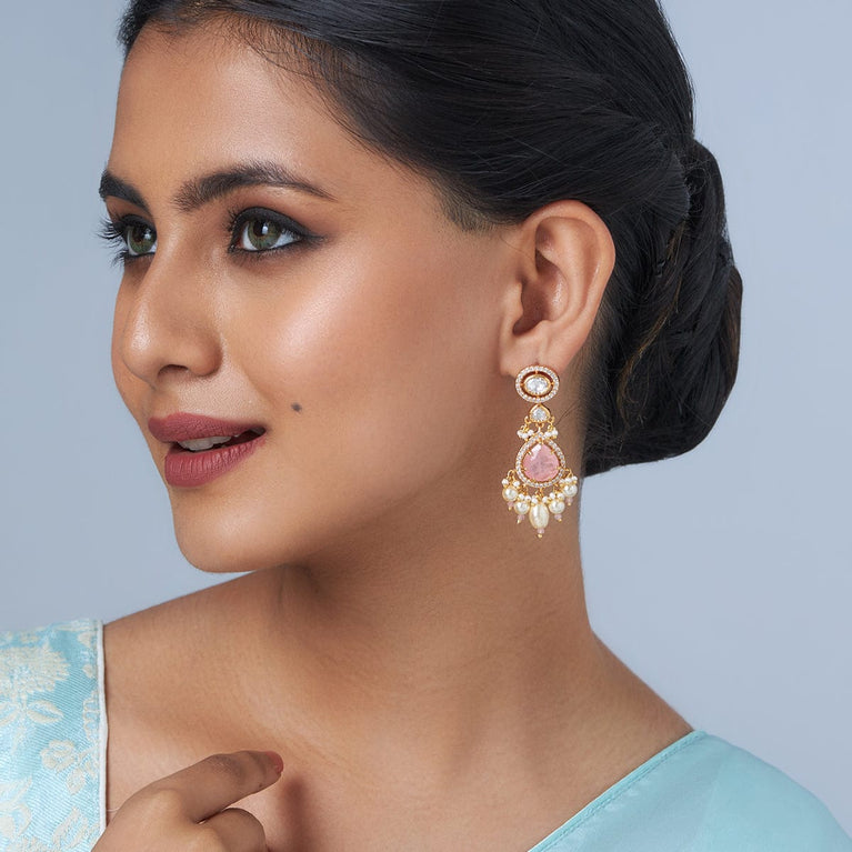 Kushal's Pink Kundan EarringFestive Kundan earrings are a must-have for enhancing your glamour. These stunning accessories feature intricate stonework and are suitable for formal and festive attire. Choose from a variety of colours, including pink, ruby, mint, and lavender, to pair with your favourite outfits