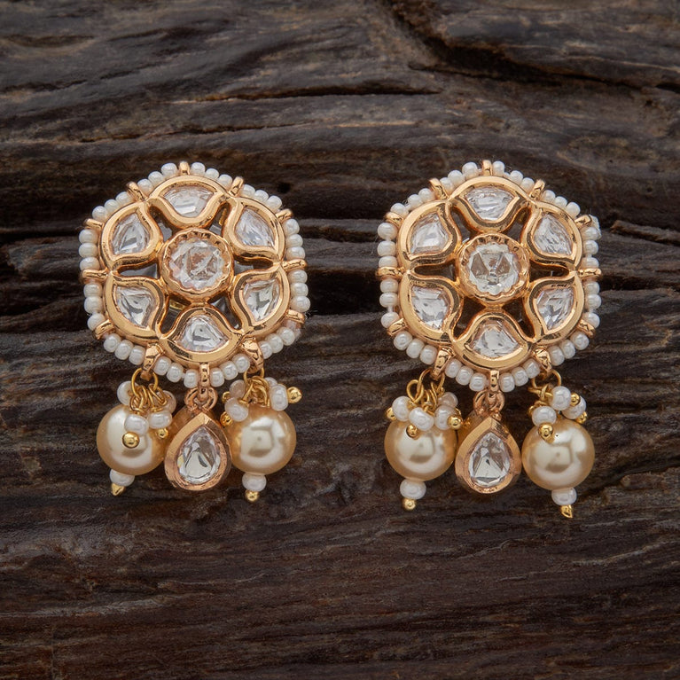 Kushal's Fashion Jewellery Flower Motif Kundan EarringKundan earrings are one of the best accessories to wear with a traditional outfit, and with matching accessories, you can also wear them with fancy outfits. Keeping this in mind, we present our latest pair of Kundan earrings for your accessory collection. All you have to do is wear them with your favorite outfit to be the trendsetter.