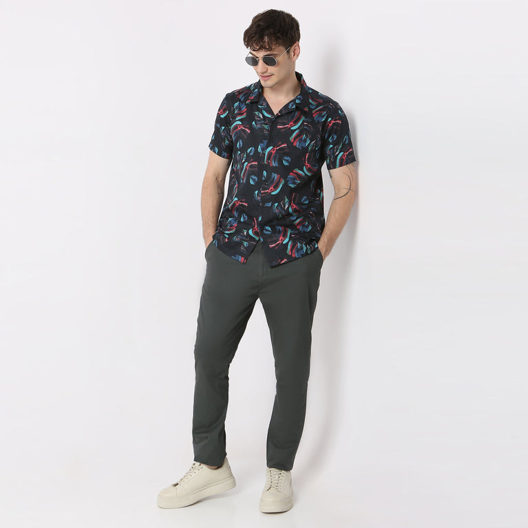 This printed pattern shirt has a shirt collar and half sleeve. Made from cotton, it is soft and comfortable to wear.