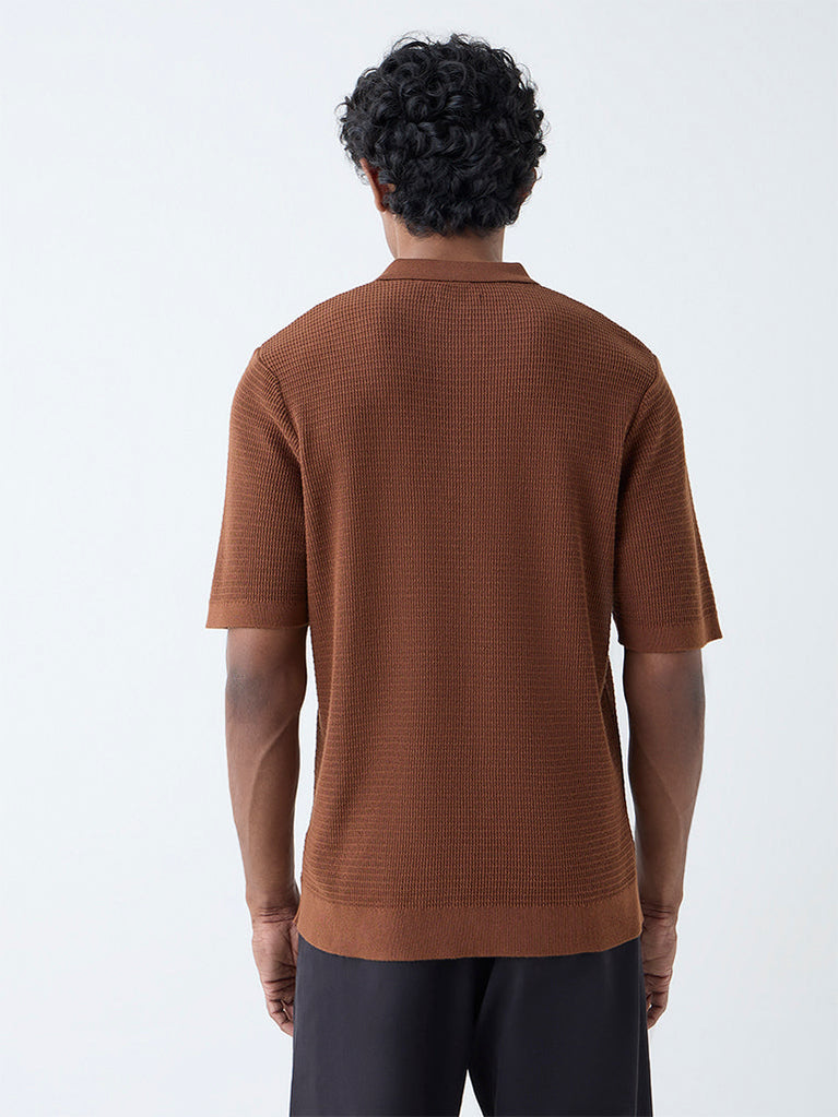 ETA Brown Knit-Textured Relaxed-Fit Polo T-Shirt
