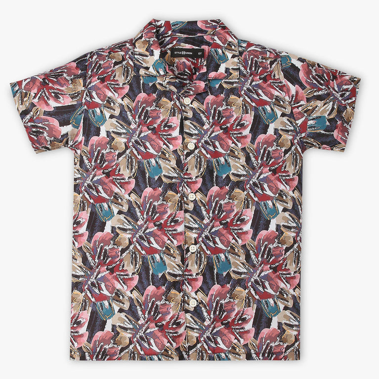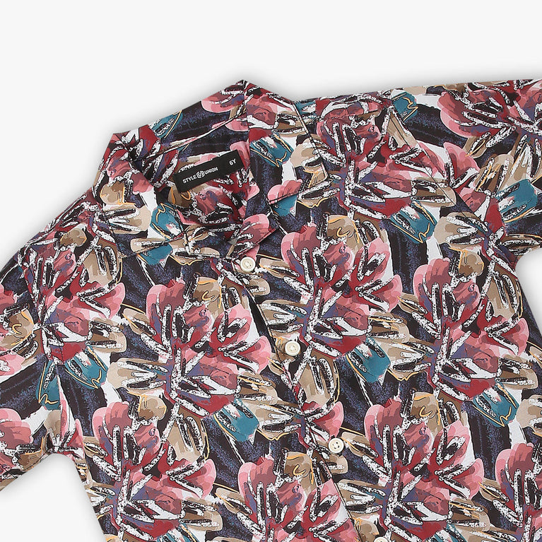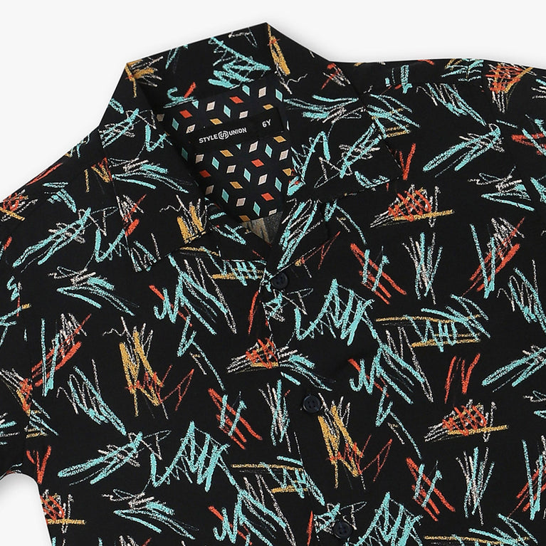 These printed pattern shirt has camp collar and half sleeve. Made from viscose, your kid's feel comfortable wearing the product.