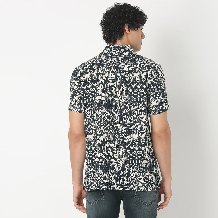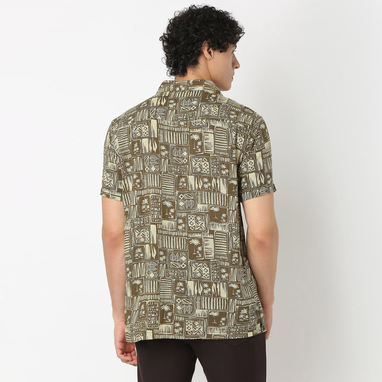 Camp Collar Half Sleeve Cuban Printed Relaxed Fit Shirt