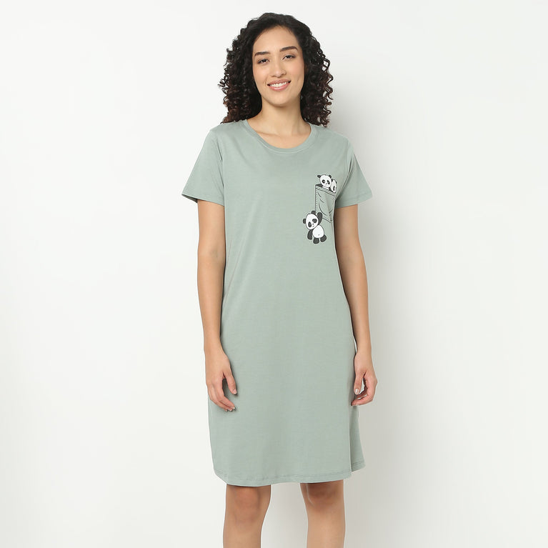 Step into comfort and style with our Cotton Printed Knee Length Gown, designed for women who appreciate both fashion and functionality. This gown, crafted from soft cotton knit, features a lovely printed pattern that adds a touch of elegance to your everyday wardrobe.