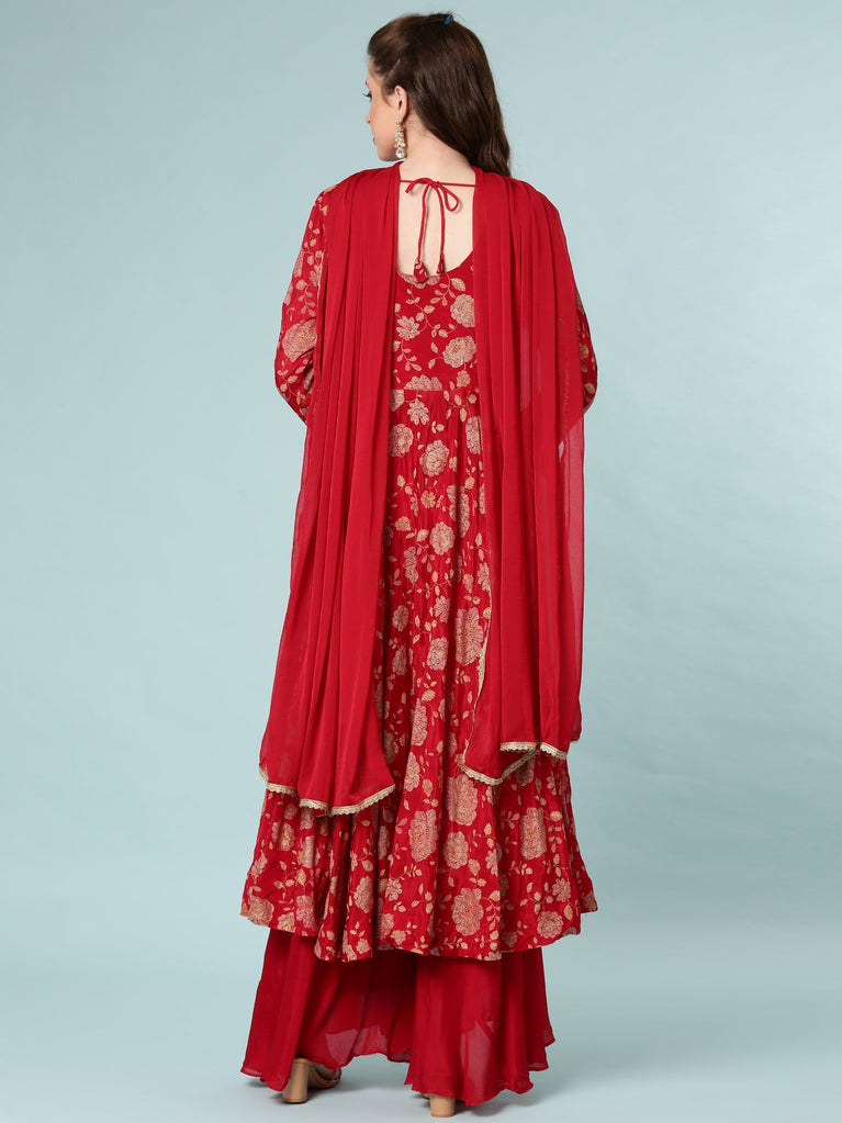 Maroon Georgette Digital Print Anarkali Set