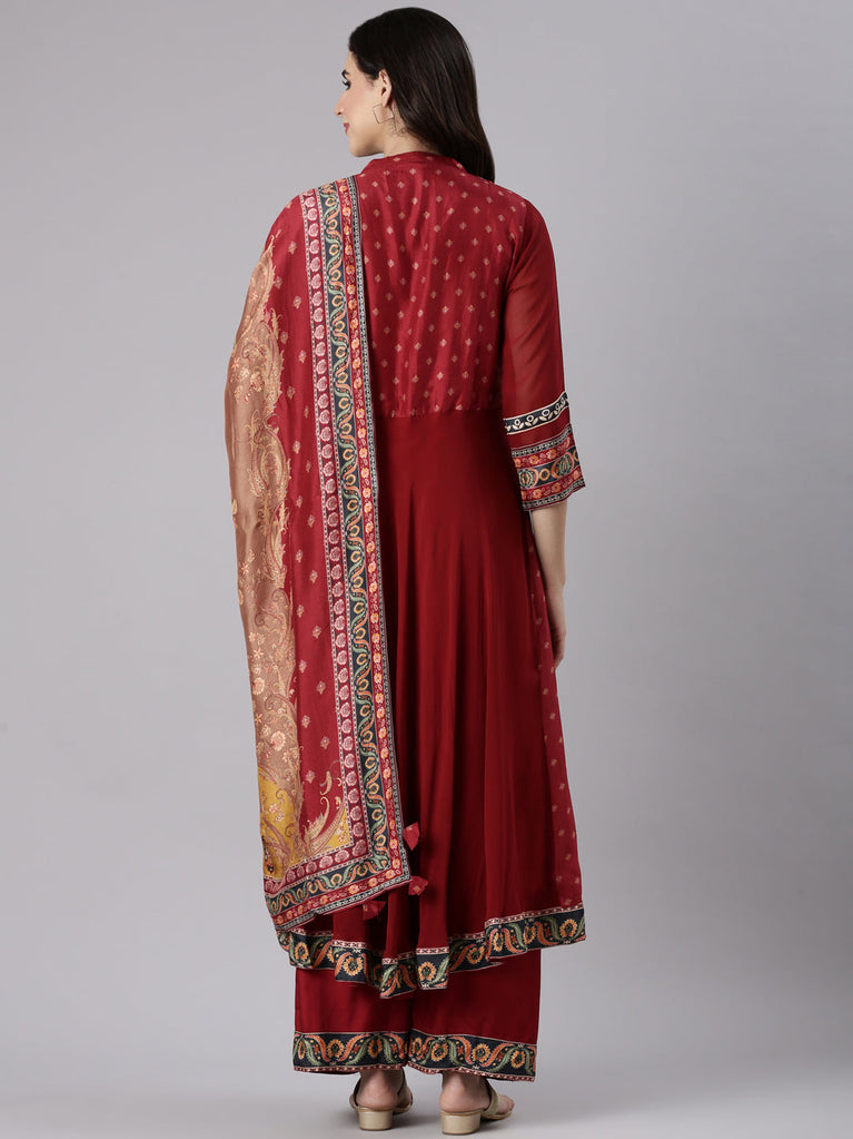 Maroon Dola Silk Three Piece Set
