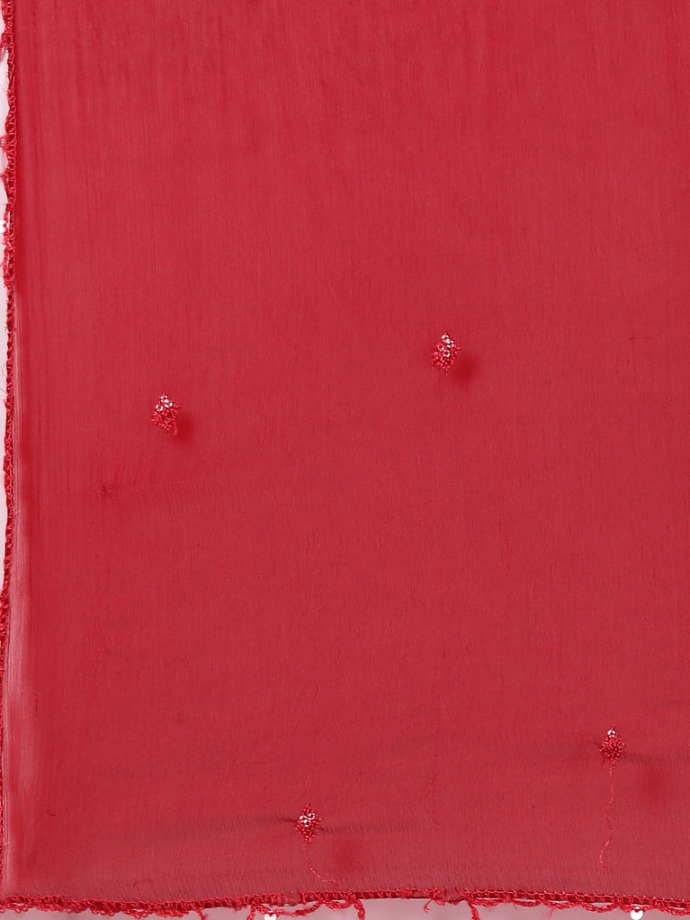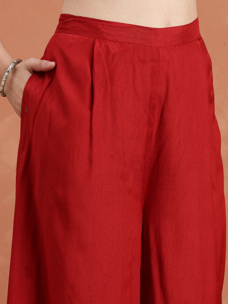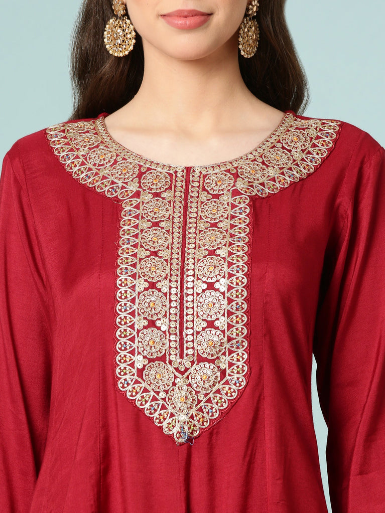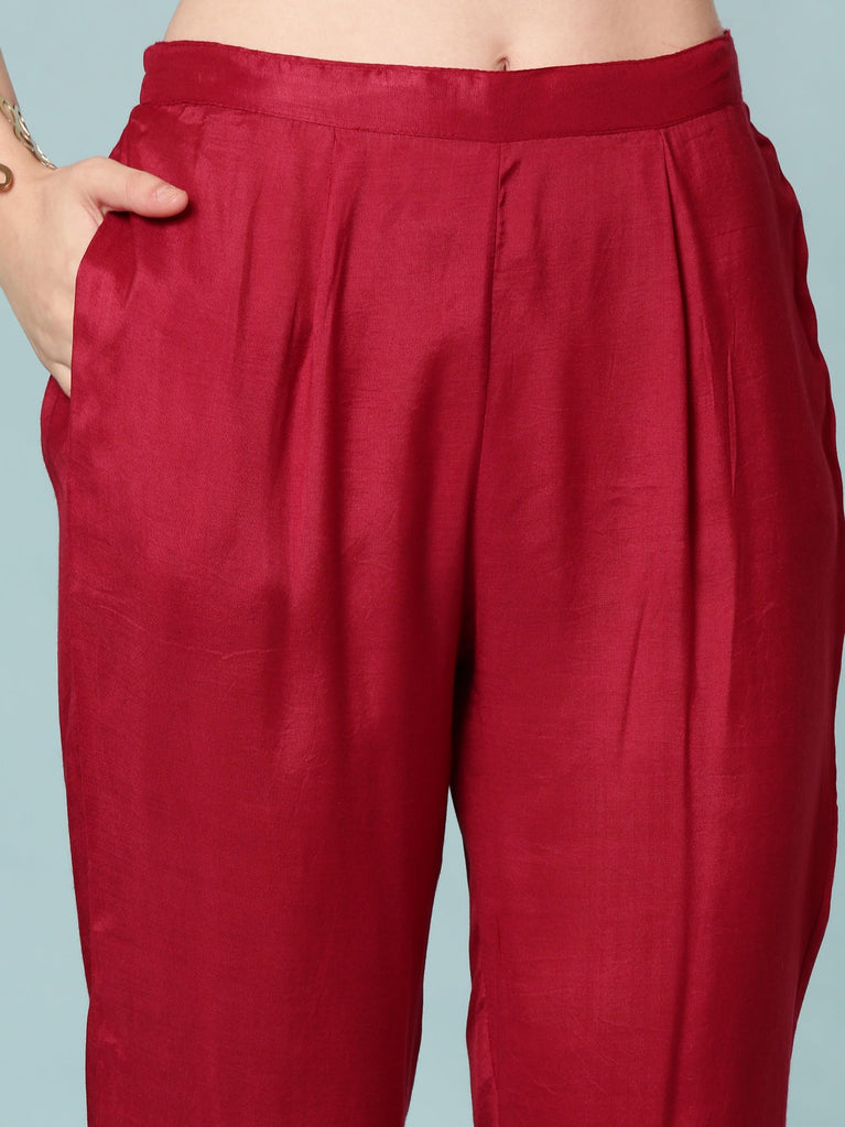 Maroon Chinnon Three Piece Set
