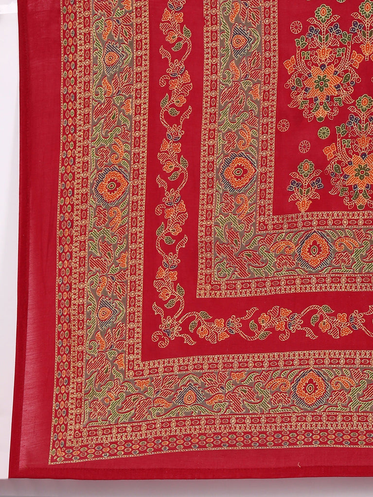 Maroon Cotton Print With Embroidery Three Piece Suit Set