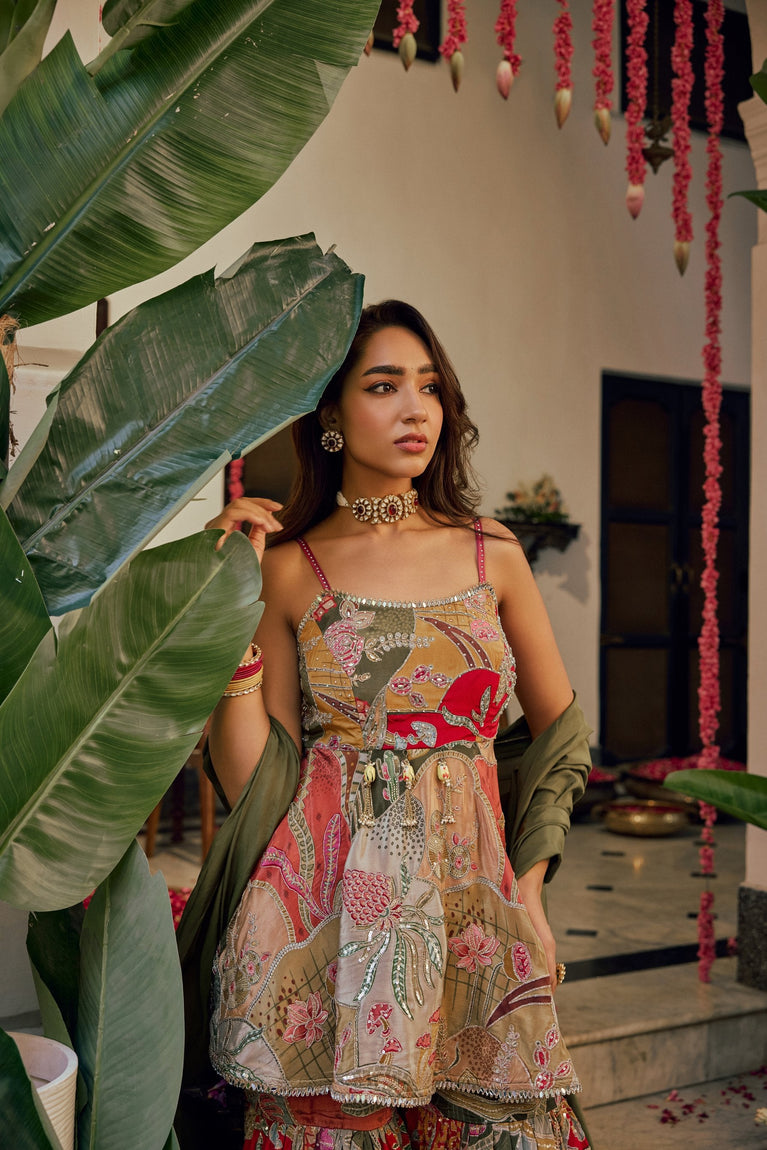 Mehadi Green Chinnon Crop Top Palazzo Set