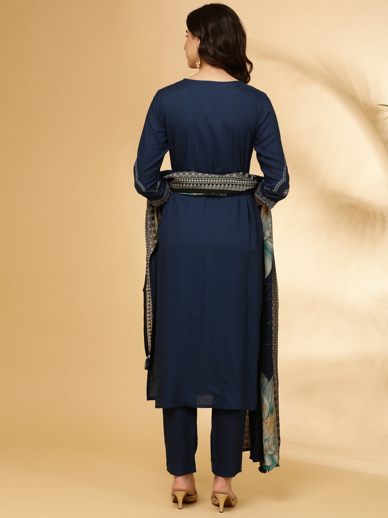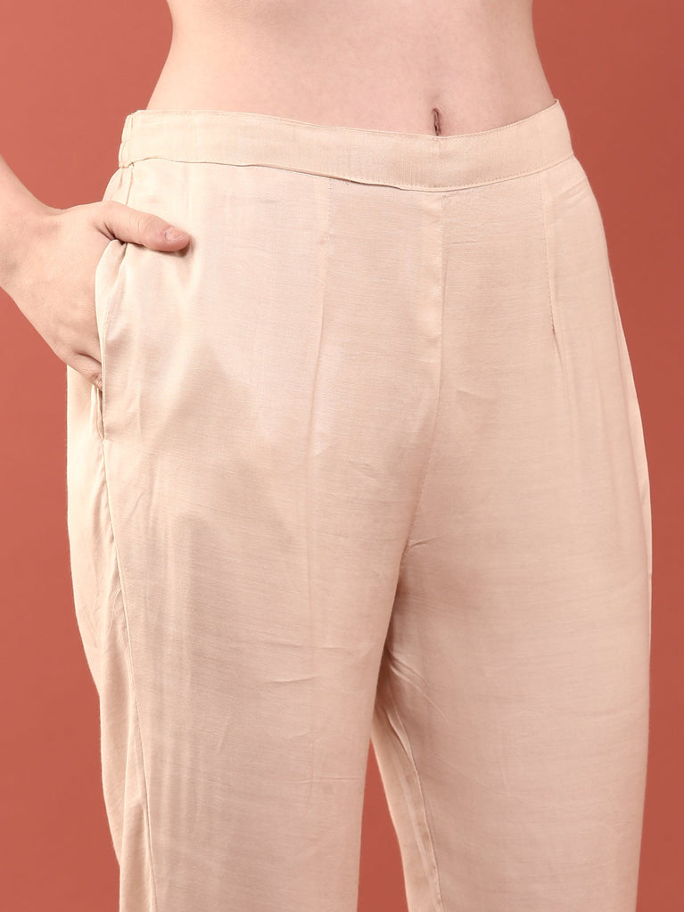 Elevate your ethnic wardrobe with this Cream Chanderi Embroidery Three Piece Set. Crafted from luxurious Chanderi fabric, it features delicate embroidery that adds a timeless charm. The set is thoughtfully designed for both comfort and elegance, making it perfect for festive occasions or sophisticated gatherings. Its breathable texture ensures ease of wear while maintaining an exquisite appearance.