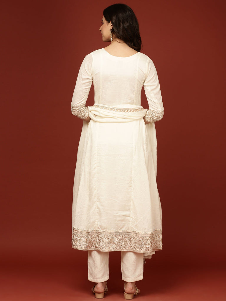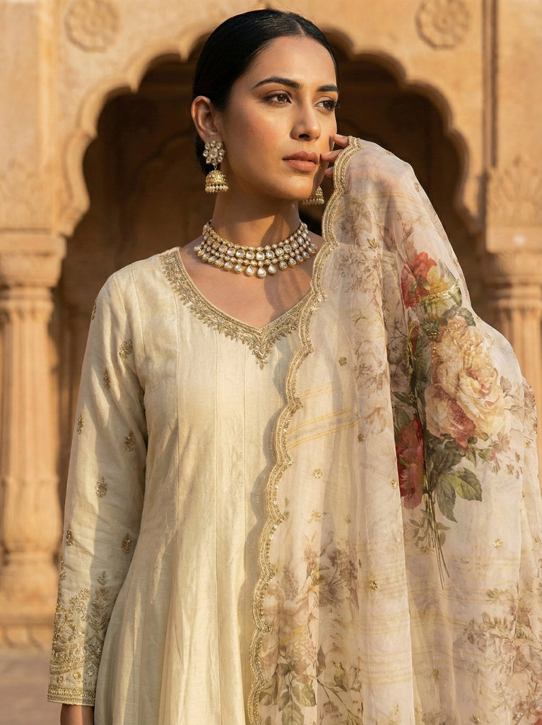 Cream Tissue Floral Embroidered Anarkali Set