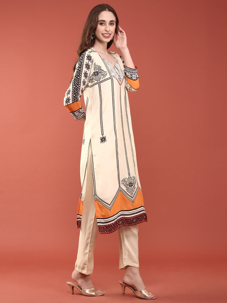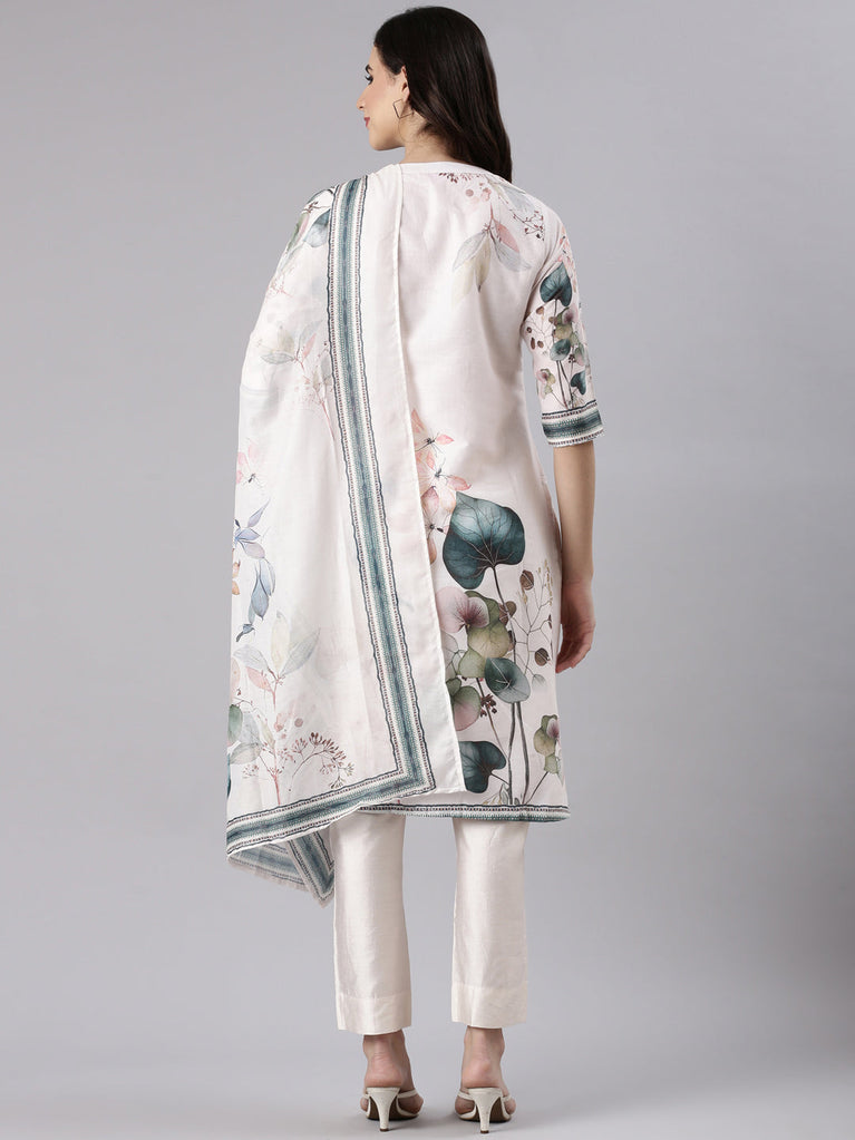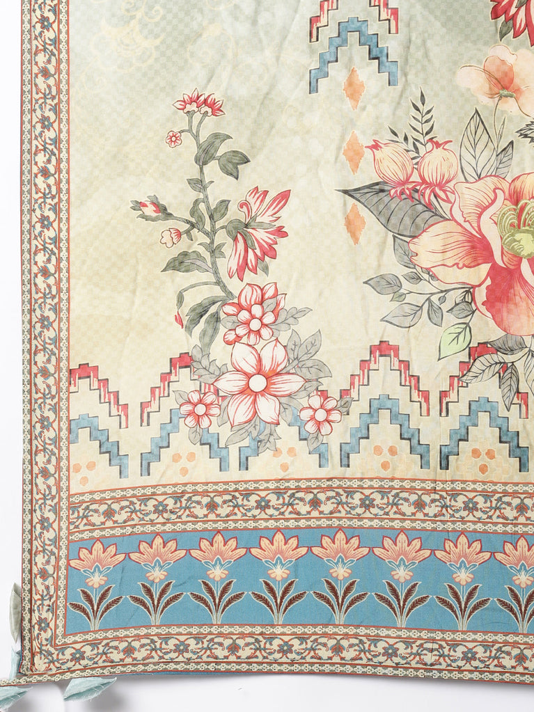 Cream Silk Digital Printed Three Piece Set