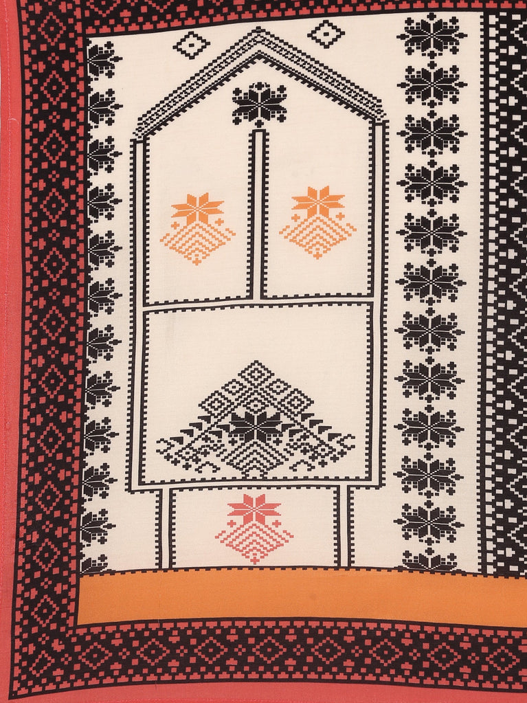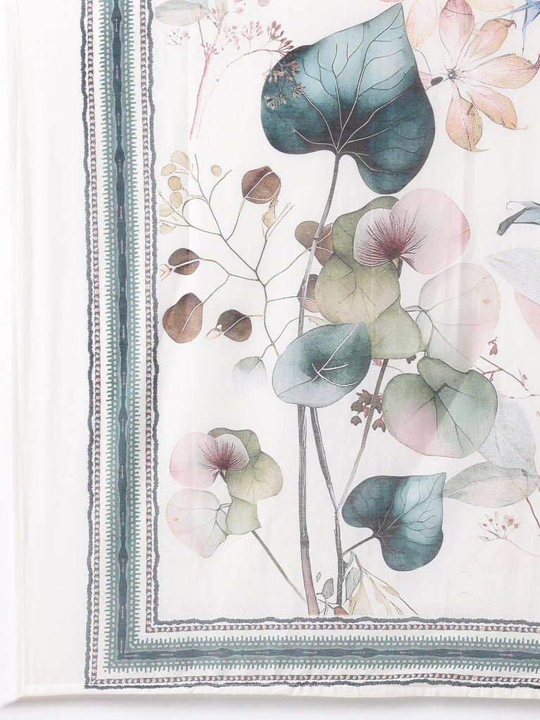 Cream Muslin Digital Print Three Piece Set
