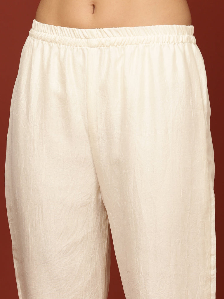 Cream Vichitra Silk Three Piece Set