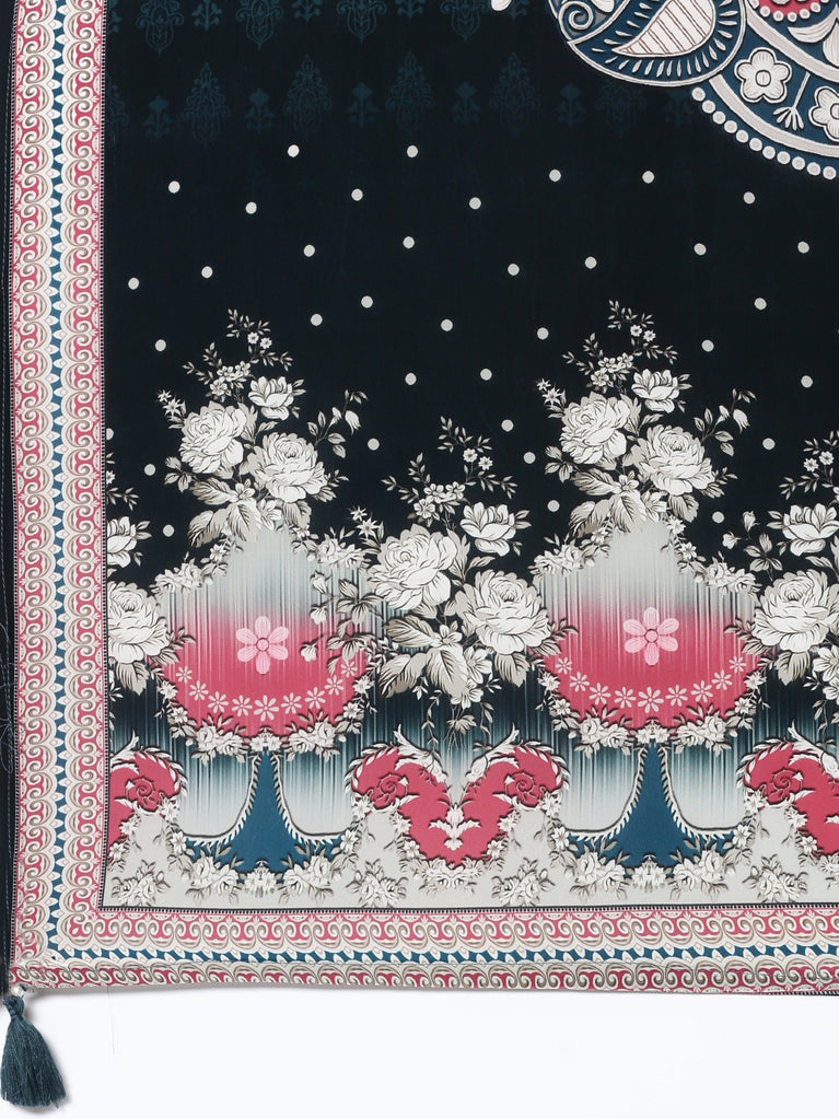 Deep Green Crepe Digital printed Three piece suit set