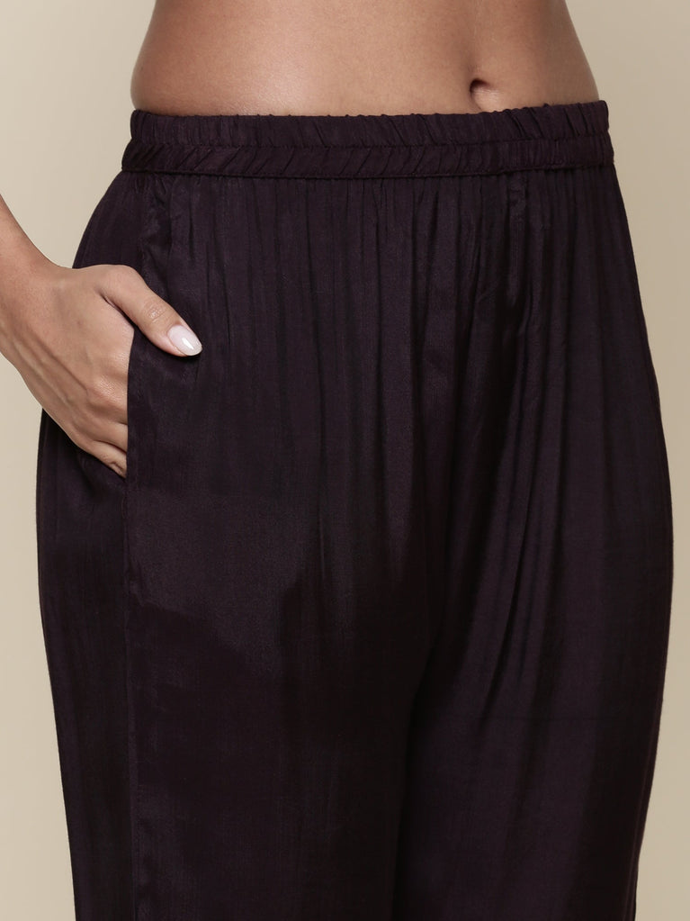 Dark Purple Muslin Three Piece Set