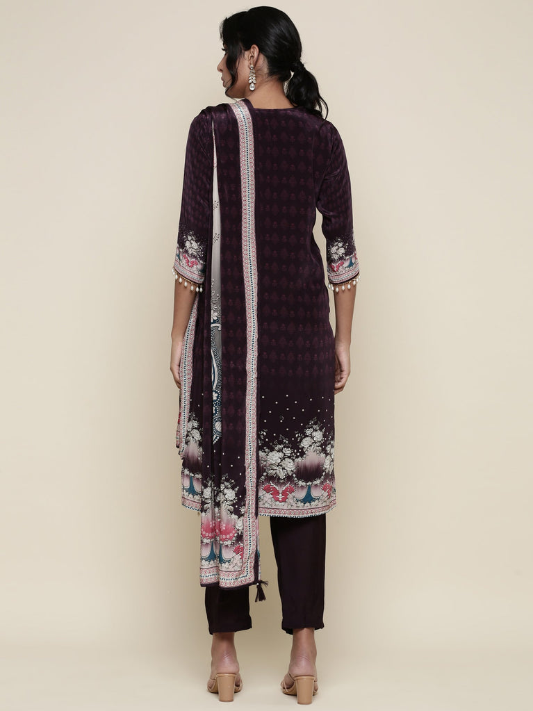 Deep Purple Rayon fabric three piece printed suit