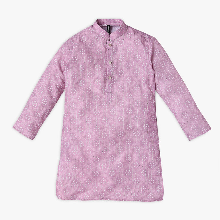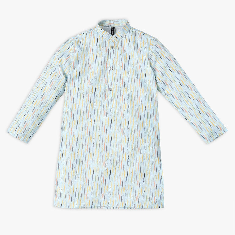This kurta sets has a mandarin collar and full sleeve. Made from polyester, your kid's feel comfortable wearing a product.
