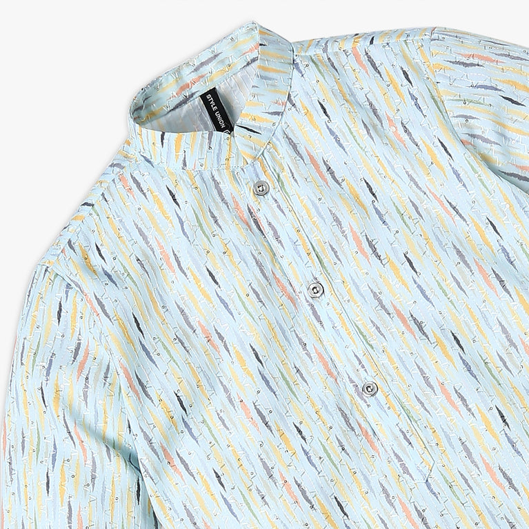 This cut and sew theme graphic pattern t-shirt has a polo neck and half sleeve. Made from cotton, your kid's feel comfortable wearing a product.