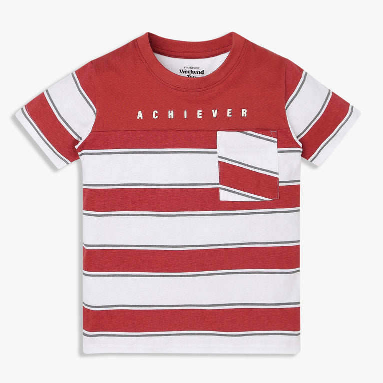 Introducing the Boy's Cotton Neck Weekend T-Shirt, a perfect blend of comfort and style for active boys. Crafted from soft cotton, this t-shirt ensures all-day ease, making it an essential weekend staple.