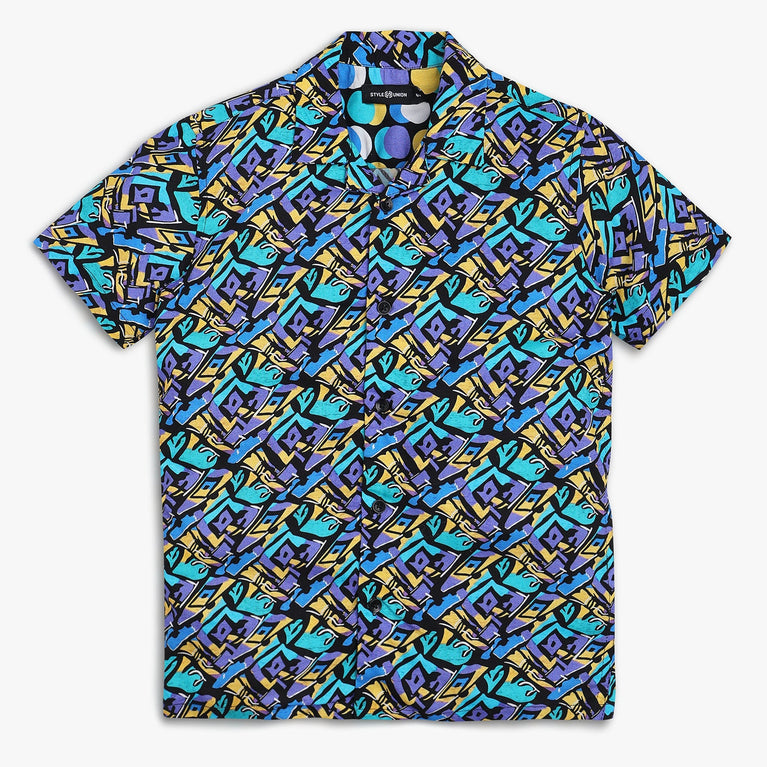These cuban shirts theme, printed pattern shirt has camp collar and half sleeve. Made from viscose, your kid's feel comfortable wearing the product.