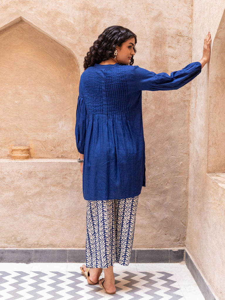 Jheel Indigo Printed Modal Kaftan Maxi Dress
