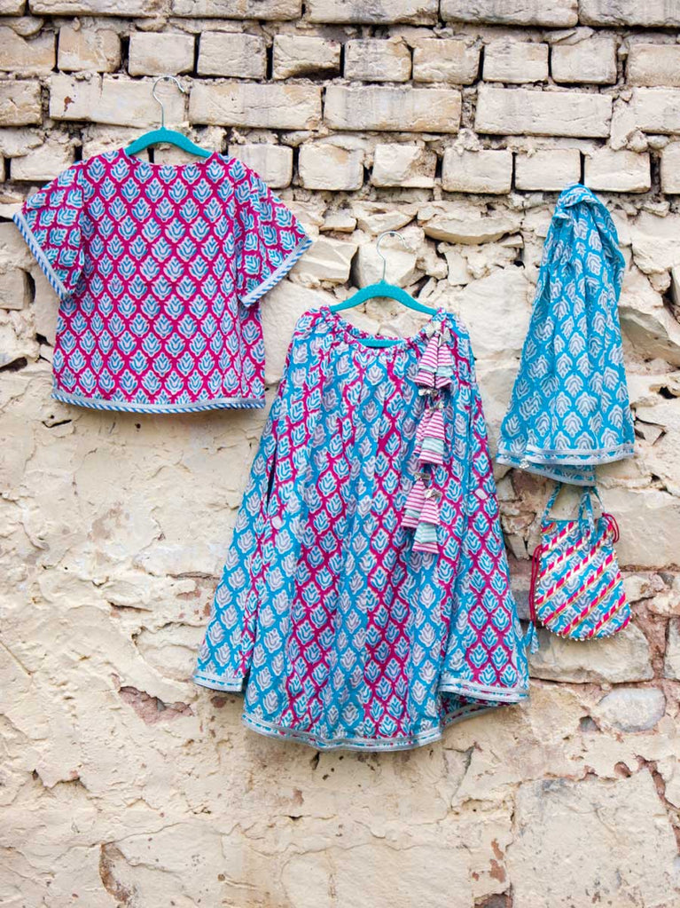 Naaz Block Printed Cotton Silk Lehanga Set of 4
