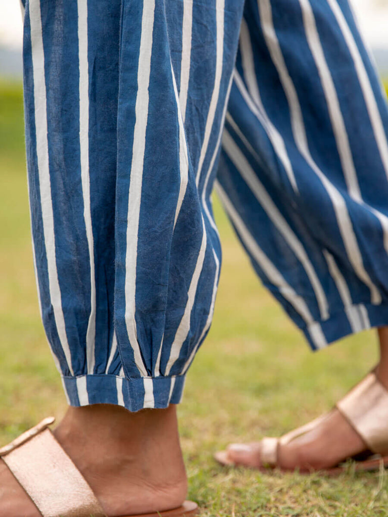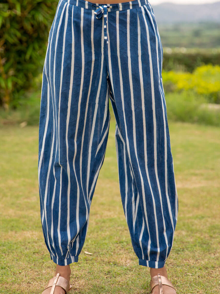 Midnight Stripes Cotton Lantern Pants